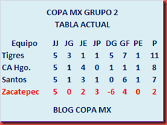 En el grupo 2 Tigres, Cruz Azul Hidalgo y Santos se encuentran en la pelea.